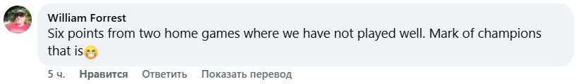 Набрали шесть очков, в ноябре сможем оглянуться назад и оценить наше [неплохое] положение, но сейчас, уходя с поля, чувствуешь себя не очень хорошо. Мы дали им слишком много шансов. Не знаю, устали ли мы. Очень много вложили в предыдущий матч, но это не оправдание.