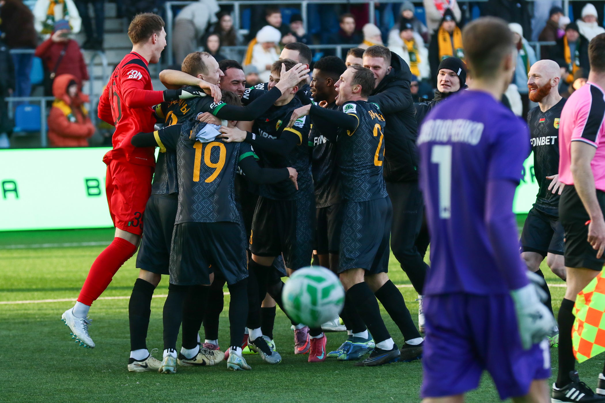 Хотя в первом тайме на поле правила был одна команда. Витебляне выглядели намного интереснее, техничнее, организованнее. Им удавались размашистые атаки с активным применением фланговых прострелов. «Неман» же, наоборот, как будто упирался в глухую стену — игроки группы атаки, где дебютировал экс-брестчанин Гордейчук, не могли «зацепиться» за мяч, организовать мало-мальски острую комбинацию. Выдвинутому на острие атаки Кравцову приходилось много бегать, а вот эффективность его перемещений была близка к нулю. В чем, естественно, немалая заслуга защитников номинальных хозяев, безукоризненно действовавших в отборе и в вытеснении нападающего с опасных рубежей.