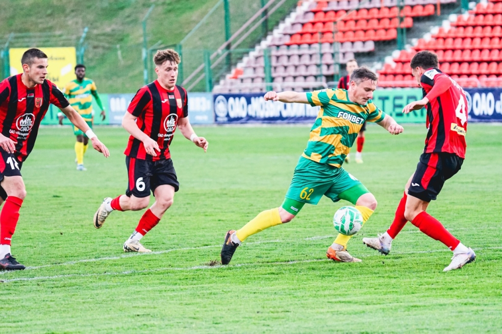 ГОЛЫ: 0:1 — Мокин (10, пас — Орешкевич). 0:2 — Мокин (32). 0:3 — Воробьев (52, пас — Вольский). 1:3 — Киселев (70). 2:3 — Михайрин (81, пас — Агбо). 3:3 — Агбо (88-г, пас — Будько).
