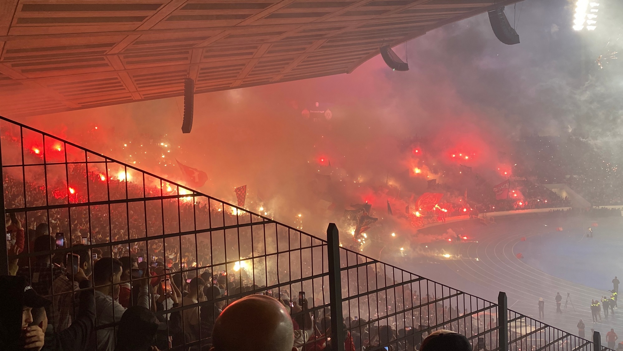 Для сравнения: на игре «Фортуна» (Кельн) — «Бохольт» на «Зюдштадионе» (стадион № 669 из осени-2025) за вот это в исполнении сектора хозяев судья увел команды в раздевалки на 15 минут.