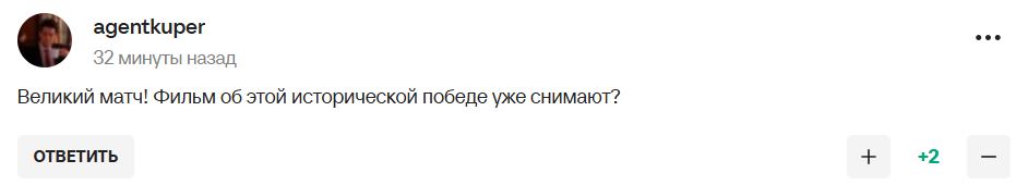 — Великий матч! Фильм об этой исторической победе уже снимают?