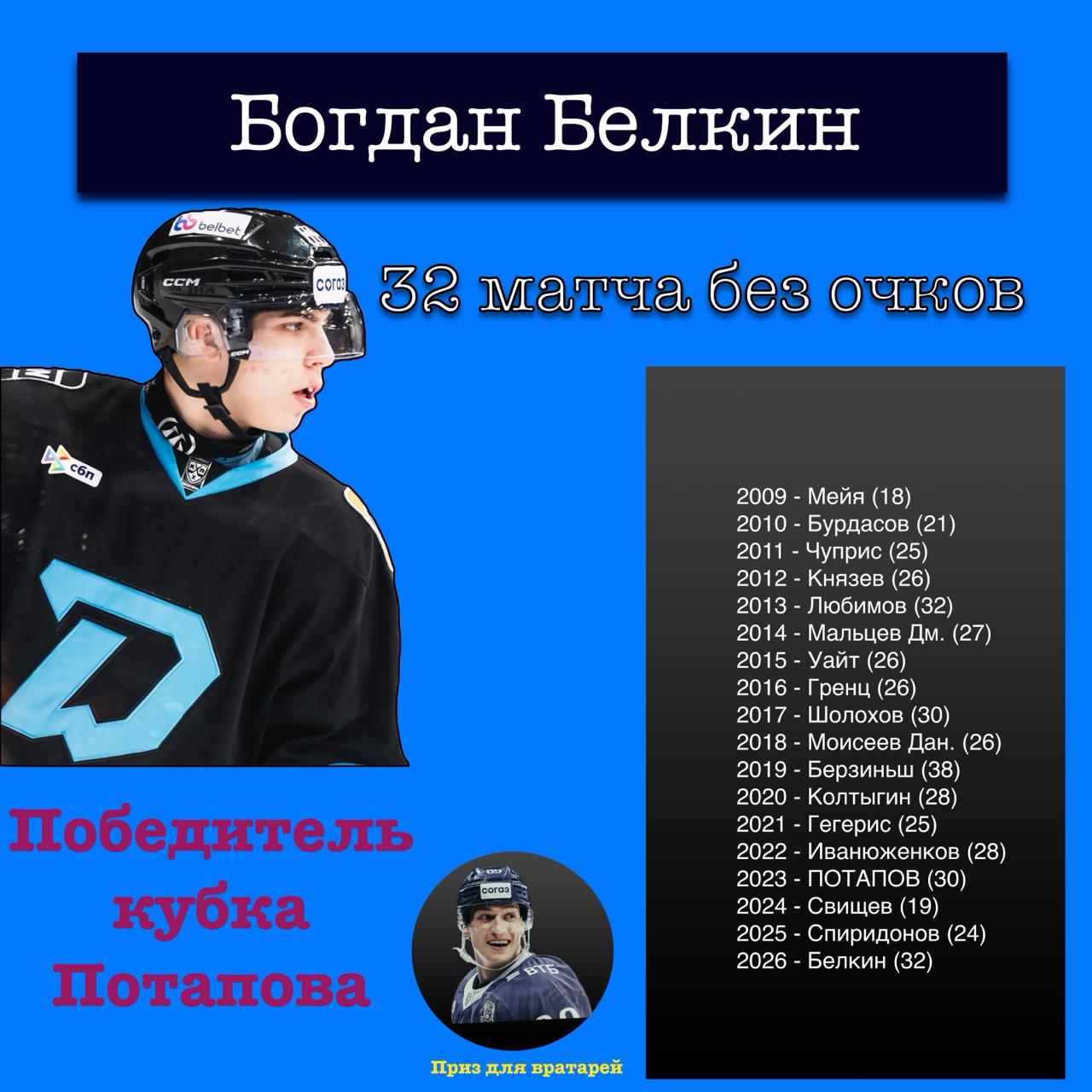 — Богдан Белкин выиграл турнир для форвардов, которые не должны набирать очки во время регулярного чемпионата за явным преимуществом. Его основной конкурент Артем Чернов сдался и в последнем матче дважды ошибся (забил и сделал передачу). А Богдан держался и честно взял престижный трофей. Хоть какой-то титул будет у минчан в этом сезоне.