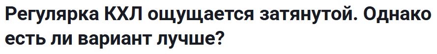 <…> «Регулярка» все больше напоминает формальное распределение мест в таблице. Лиге стоит продолжать искать способы повышения конкуренции. Один из вариантов — переход к общей таблице без разделения на конференции. В таком формате каждая команда могла бы проводить по три матча с каждой, что даст 63 игры за сезон. Другой вариант — введение плей-ин, как в МХЛ, что увеличит шансы команд из нижней части таблицы и продлит борьбу за места.