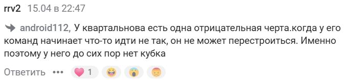 Главный же «болельщик» «зубров» из числа российских журналистов Алексей Шевченко посоветовал Квартальнову сменить место работы.