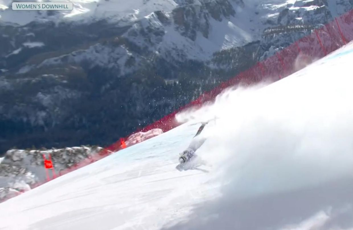 При вылете с трамплина Вонн зацепилась плечом и палкой за размечающий трассу флажок, потеряла равновесие в полете и упала на высокой скорости, перевернувшись и буквально врубившись в жесткий снег многострадальными коленями и головой. Камеры выхватили неестественное положение левой ноги — самостоятельно встать не смогла. Оказание помощи на месте заняло более 15 минут, а в прямой трансляции были слышны душераздирающие болевые реакции чемпионки.
