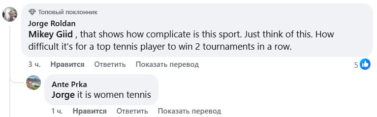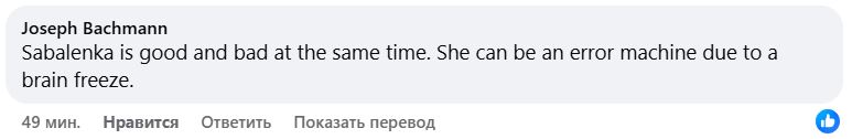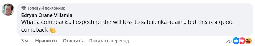 — Какой камбэк… Я ожидал, что она снова проиграет Соболенко… Но это отличный камбэк.