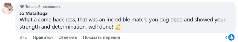 — Какой камбэк, Джесс. Это был невероятный матч, ты проявила всю свою силу и решимость, молодец!