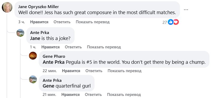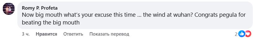 — Ну, хвастунья, какое у тебя оправдание на этот раз? Ветер в Ухане? Поздравляю, Пегула, ты победила хвастунью.