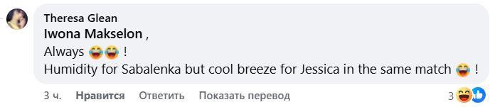 Ответ: Как всегда! Влажность для Соболенко, но прохладный ветерок для Джессики в том же матче.