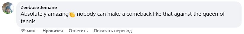 — Абсолютно потрясающе. Никто не может совершить такой камбэк против королевы тенниса.