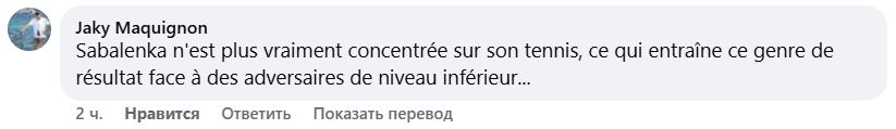 — Соболенко уже не так сосредоточена на теннисе, что и приводит к таким результатам против соперниц более низкого уровня…
