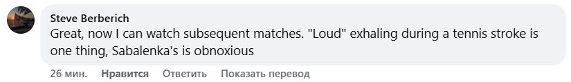 — Отлично, теперь я могу смотреть последующие матчи. «Громкий» выдох во время теннисного удара — это одно, а вот Соболенко — это просто отвратительно.