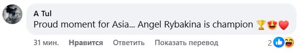 — Момент гордости для Азии… Ангел Рыбакина чемпион.