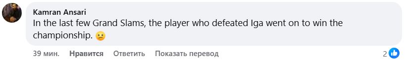 — В последних нескольких турнирах «Большого шлема» игрок, победивший Игу [Швентек], в итоге становился чемпионом.