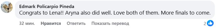 — Поздравляю Лену! Арина тоже молодец. Люблю их обеих. Впереди еще больше финалов.