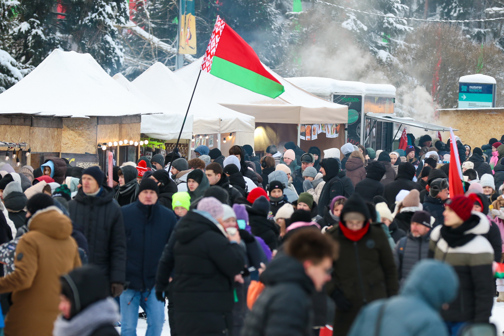 А ее в этот уик-энд в знаменитом биатлонном центре собралось немало. Организаторы этапа позаботились, чтобы болельщики ни в чем не испытывали неудобств. В эти дни к месту соревнований был организован специальный автобусный маршрут из Минска. В самих Раубичах были развернуты многочисленные точки общепита, желающие могли сыграть в снежный волейбол, посетить выставку ледяных фигур, попробовать силы в лазерном тире или хоккейной бросковой зоне.