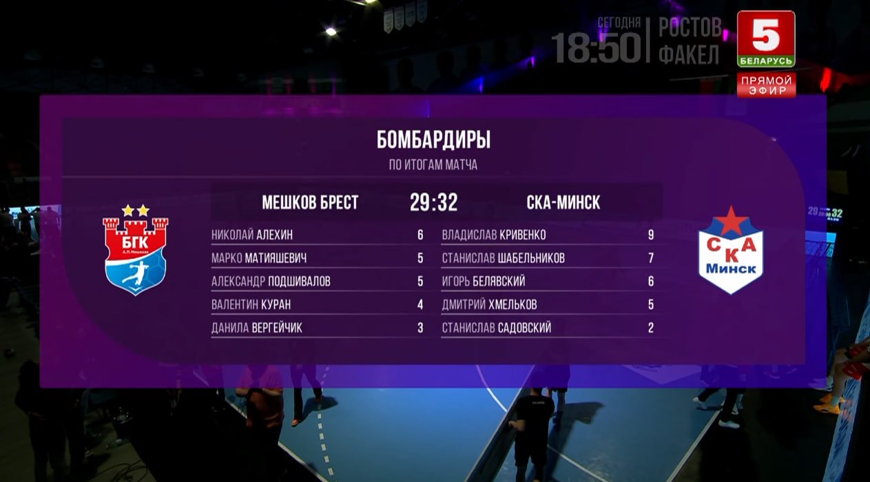 Самым результативным игроком встречи стал Владислав Кривенко из СКА, который забросил девять мячей. Семь голов на счету его одноклубника Станислава Шабельникова.